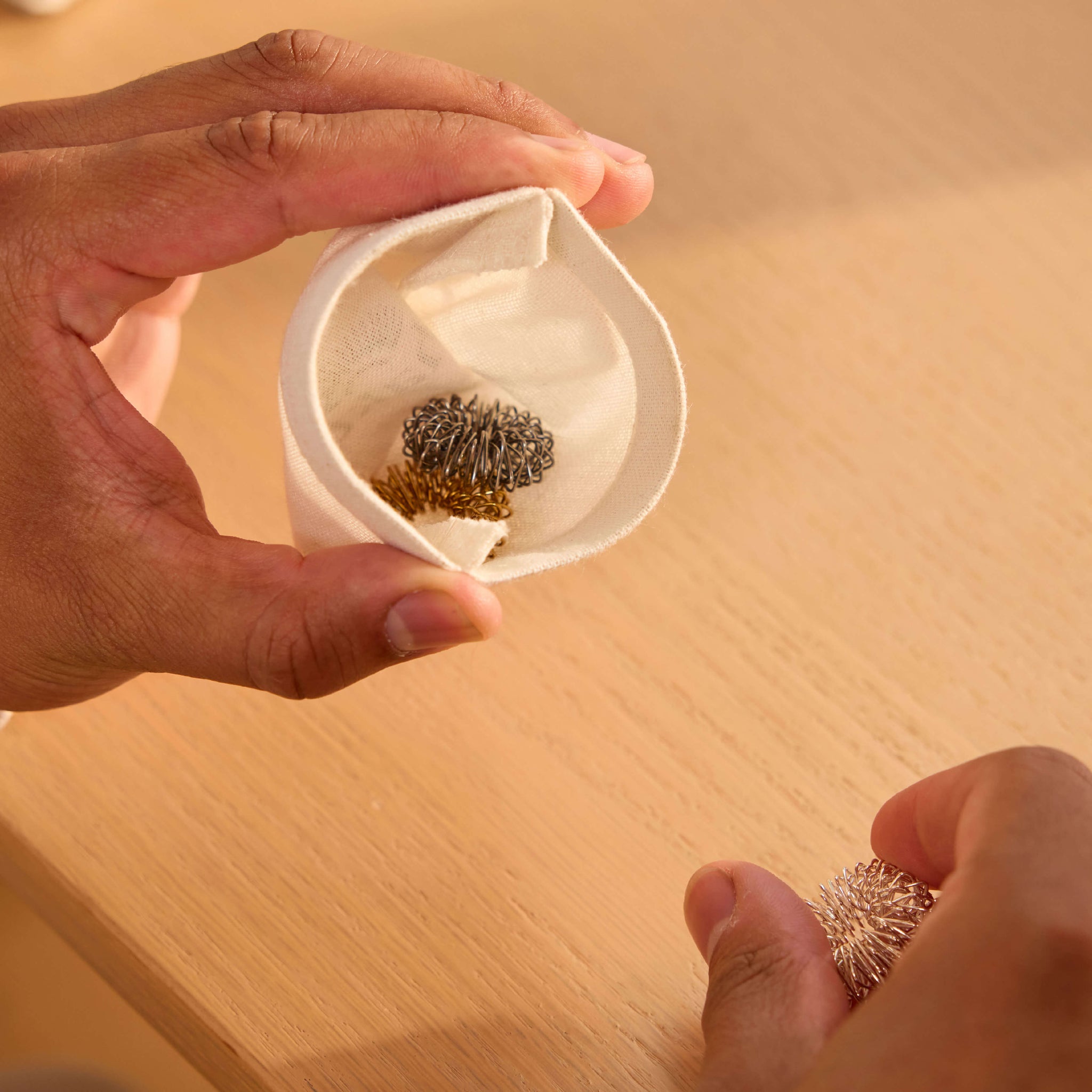 L'agopressione si rivolge alle tensioni presenti in ogni dito e le sottili "punte" su ogni anello le rilasciano. La sensazione calma il corpo, libera la mente e rallenta i pensieri.